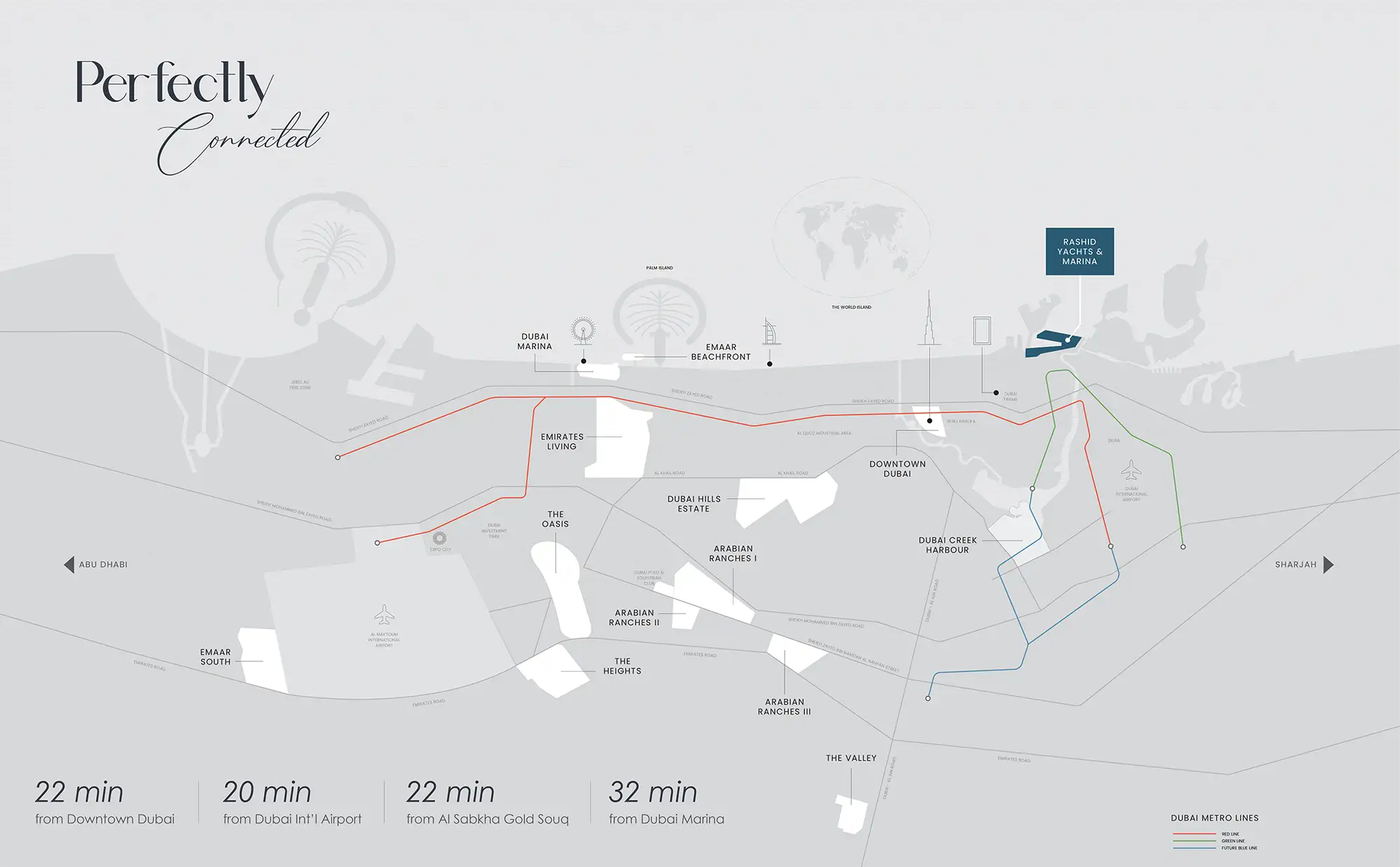 آپارتمانهای مارینا پلیس، ساخته شده توسط شرکت معتبر اعمار در منطقه زیبای مینا راشد، نمونهای برجسته از زندگی لوکس و مدرن در کنار آبهای نیلگون خلیج فارس است. این پروژه با الهام از سبک زندگی ساحلی، طراحیهای خیرهکننده و امکانات رفاهی پیشرفته، فضایی ایدهآل برای زندگی و سرمایهگذاری فراهم کرده است. قرارگیری در قلب مینا راشد، یکی از مناطق در حال توسعه دبی، دسترسی آسان به بنادر، مراکز تجاری، و جاذبههای گردشگری این شهر را برای ساکنان ممکن میسازد. همچنین، نزدیکی به اسکلهها و چشماندازهای بینظیر دریا، تجربهای منحصربهفرد از زندگی در کنار آب را ارائه میدهد.