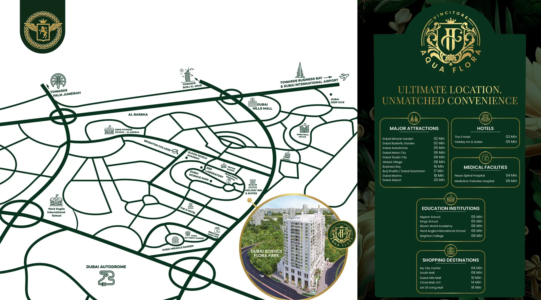موقعیت مکانی سانیتیس پارک بهعنوان یک منطقه نوظهور، آپارتمانهای آکوا فلورا را به یک فرصت عالی برای زندگی یا سرمایهگذاری تبدیل کرده است. نزدیکی به جادههای اصلی، مراکز خرید، مدارس بینالمللی، و بیمارستانها از مزایای این پروژه است. علاوه بر این، امکانات رفاهی متنوعی نظیر استخرهای مدرن، باشگاههای ورزشی، مسیرهای پیادهروی و دوچرخهسواری، و فضاهای سبز اختصاصی در مجموعه فراهم شده است. امنیت ۲۴ ساعته و مدیریت حرفهای نیز از دیگر ویژگیهای این پروژه است که آن را برای کسانی که به دنبال آرامش، رفاه و ارزش افزوده بالا در سرمایهگذاری هستند، جذاب میکند.