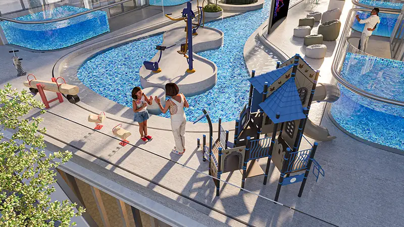 جذابیت معماری این اقامتگاه های مجلل به طور متفکرانه با در نظر گرفتن تجمل طراحی شده است. چیزی که این اقامتگاهها را متمایز میکند، گنجاندن استخرهای خصوصی در همه است که به ساکنان این امکان را میدهد تا در آسایش خانههایشان در واحهای از آرامش غرق شوند. آپارتمان ها بخشی از برج های دوقلو کم ارتفاع هستند که در سطح سکو به هم متصل شده اند و جریانی یکپارچه بین فضاها ایجاد می کنند و در عین حال حریم خصوصی منحصر به فردی را ارائه می دهند. این سازه های کم ارتفاع ضمن حفظ حسی منحصر به فرد، حس اجتماع را تضمین می کند و تعادل ایده آلی را برای کسانی که به دنبال ترکیبی از تجمل، راحتی و حریم خصوصی هستند، ارائه می دهد.