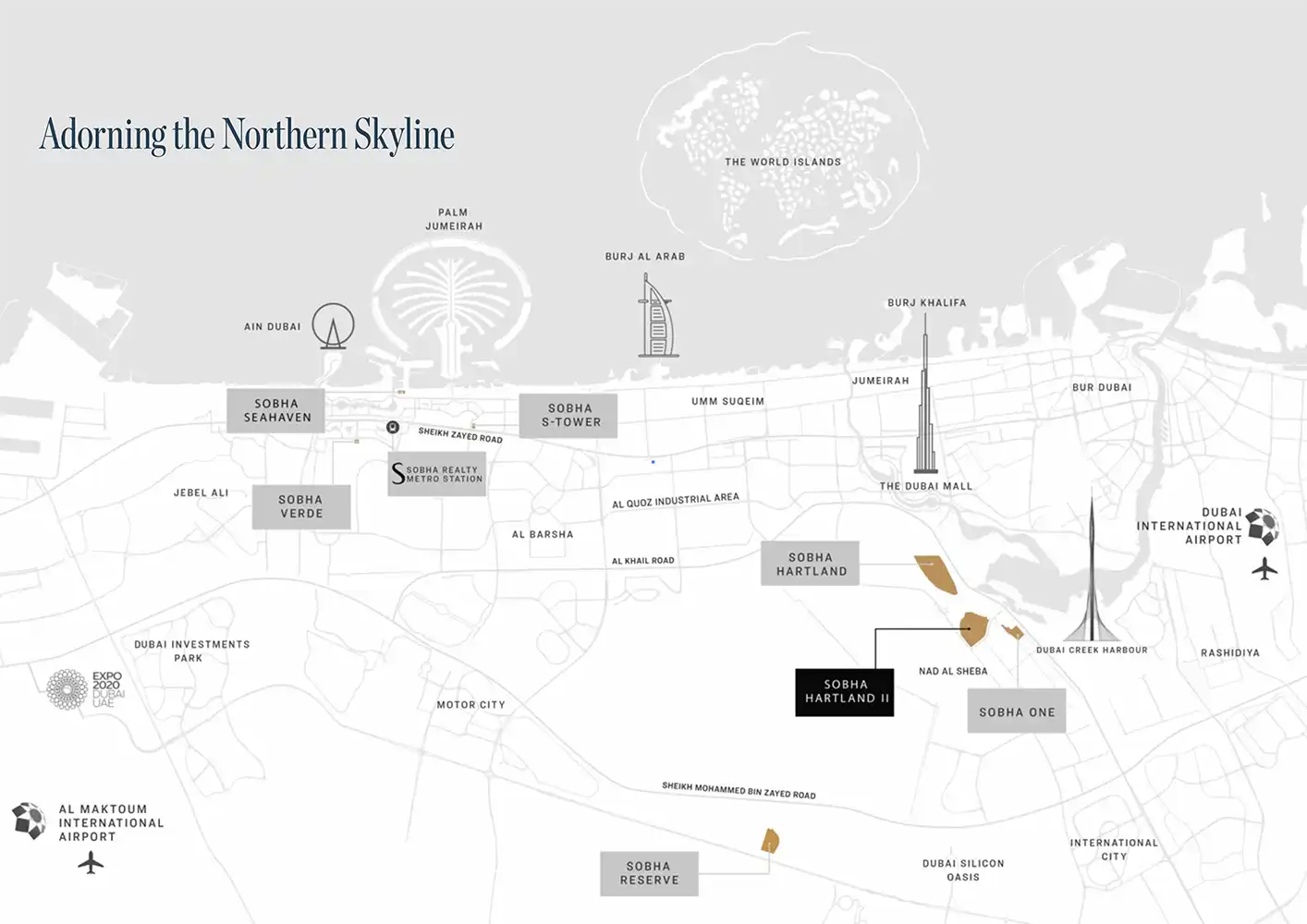 آپارتمانهای اسکای ویوز سولیر، یکی از پروژههای لوکس و مدرن شرکت شوبا در منطقه هارتلند، ترکیبی از طراحی شیک، فناوری پیشرفته، و امکانات رفاهی منحصر به فرد است. این آپارتمانها با معماری چشمنواز و استانداردهای ساختوساز بالا، تجربهای بینظیر از زندگی در فضای شهری را ارائه میدهند. قرارگیری در قلب منطقه هارتلند، این پروژه را به یکی از برترین انتخابها برای کسانی که به دنبال زندگی باکیفیت و دسترسی آسان به نقاط مهم دبی هستند، تبدیل کرده است. نزدیکی به مراکز تجاری، مدارس بینالمللی، و فضاهای تفریحی از دیگر مزایای این مجموعه است.