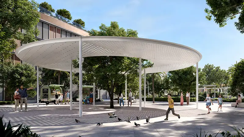 با ورود به این مجموعه، با دنیایی روبرو میشوید که مفهوم لوکس بودن را در سادگی و آرامش تعریف میکند. پالت رنگهای داخلی بر پایه تناژهای گرم و خاکی طراحی شده است تا حس قدرت و آرامش طبیعت را منتقل کند. چه در لابیهایی با چشماندازهای خیرهکننده و چه در خلوتگاه شخصی هر واحد، همه چیز برای ایجاد حس زندگی آرام و متعادل طراحی شده است. معماری داخلی تمامی واحدها به گونهای است که فضای باز، روان و مناسب برای تعاملات اجتماعی و لحظات فردی فراهم میآورد. مبلمان، وسایل و تمامی جزئیات با دقت انتخاب شدهاند تا علاوه بر ایجاد راحتی، تجربهای لذتبخش برای ساکنان به همراه داشته باشند.ایده غالب این پروژه بر پایه نگاهی جامع به زندگی شهری بنا شده؛ جایی که یک پناهگاه شهری غنی از امکانات در هماهنگی با چشماندازی جهانی ساخته شده است. در نمای بیرونی ساختمان، مجموعهای منحصربهفرد از امکانات سلامت و تفریحی در نظر گرفته شده تا آرامش جسمی، ذهنی و اجتماعی ساکنین را تضمین کند. در سایه درختان به تمرین یوگا بپردازید یا صبح خود را با دویدن در مسیرهای الهامگرفته از باغهای کلاسیک آغاز کنید. زمینهای چند منظوره ورزشی نیز نه تنها محل ورزش، بلکه محلی برای معاشرت اجتماعی هستند. و در پایان روز، در استخرهای درخشان آرام بگیرید یا اجازه دهید کودکان در زمینهای بازی رنگارنگ و بخش بازیهای آبی مخصوص کودکان از هیجان لذت ببرند.