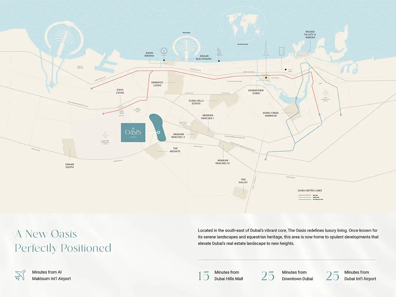 ویلاهای پالاس اوسترا در یکی از مناطق آیندهدار و دسترسیپذیر دبی واقع شدهاند. فاصلهی کم تا مراکز تجاری، فرودگاه بینالمللی دبی، مدارس بینالمللی، ساحل و مراکز خرید لوکس، این پروژه را به انتخابی بینقص برای خانوادههایی تبدیل کرده که به دنبال ترکیب کار، زندگی و آرامش هستند. قرار گرفتن در منطقهای سبز و آرام، فرصتی کمنظیر برای تجربه زندگی در فضای ویلایی، در عین نزدیکی به مرکز پویای شهر است.