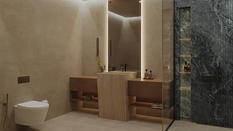 استفاده از موادی مانند چوب بلوط خرمایی، شیشه های رنگی مشکی و سطوح کورین در آپارتمان ها فضایی از ظرافت را ایجاد می کند. این عناصر نه تنها جذابیت بصری فضاهای نشیمن را افزایش می دهند، بلکه دوام و عملکرد را نیز ارائه می دهند. ادغام یکپارچه فضاهای داخلی و خارجی به ساکنین این امکان را می دهد که از مناظر منحصر به فرد دبی لذت ببرند و در عین حال آسایش خانه های خود را تجربه کنند.