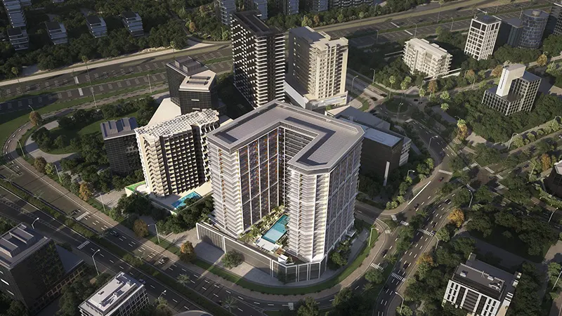 این اعجاز معماری 20 طبقه مرتفع، نمای شیشهای کریستالی با طراحی معاصر را با راحتی بینظیر از جمله زیرزمین، زمین، نیمساخت، و سطح سکو از جاذبهها ترکیب میکند. این نما به گونه ای طراحی شده است که با فروشگاه های خرده فروشی سطح بالا در محل، همراه با پارک های مجاور و فضاهای تفریحی برای یک سبک زندگی آرام، یک سبک زندگی کامل را ارائه دهد.