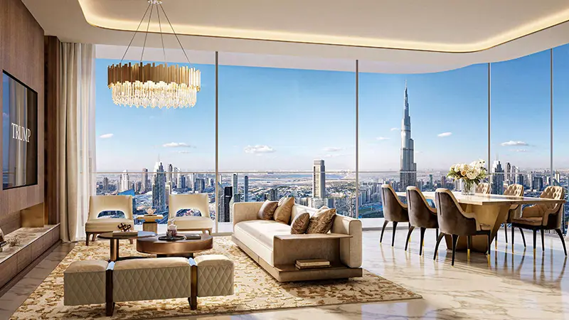 پروژه ترامپ، میهمانان خود را با یک ورودی باشکوه از لابی اصلی و فضایی کاملاً اختصاصی برای ورود ویژه افراد خاص، پذیرایی میکند. طراحی الهامگرفته از نیویورک است اما با روح پرجنبوجوش دبی درآمیخته؛ جایی که فرهنگ و پیشرفت در هم تنیده میشوند. شما در این برج میتوانید از سوئیتهای یکخوابه گرفته تا پنتهاوسهای نمادین خیابان پنجم (Fifth Avenue) را انتخاب کنید، جایی که هر جزئی نه تنها تزئینی، بلکه تعریفکننده محیط زندگی شماست. همه واحدها دارای سقفهای بلند، آسانسور خصوصی و پنجرههایی هستند که مناظر بیپایانی از برج خلیفه و خلیج عرب را به نمایش میگذارند، همراه با جزئیاتی بینظیر برای خلق یک تجربه حسی تمامعیار.